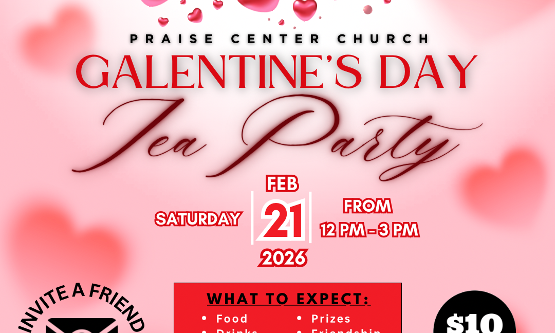 We would like to Formally Invite you to the 2nd Annual Youth Galentines Day Tea Party Hosted by Administrative Assistant Eugene C. McCown Jr, Pastor of Praise Center COGIC. Join…