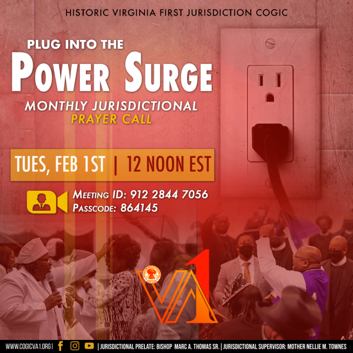 Join us for our monthly Jurisdictional Power Surge Prayer Call at 12 noon EST.