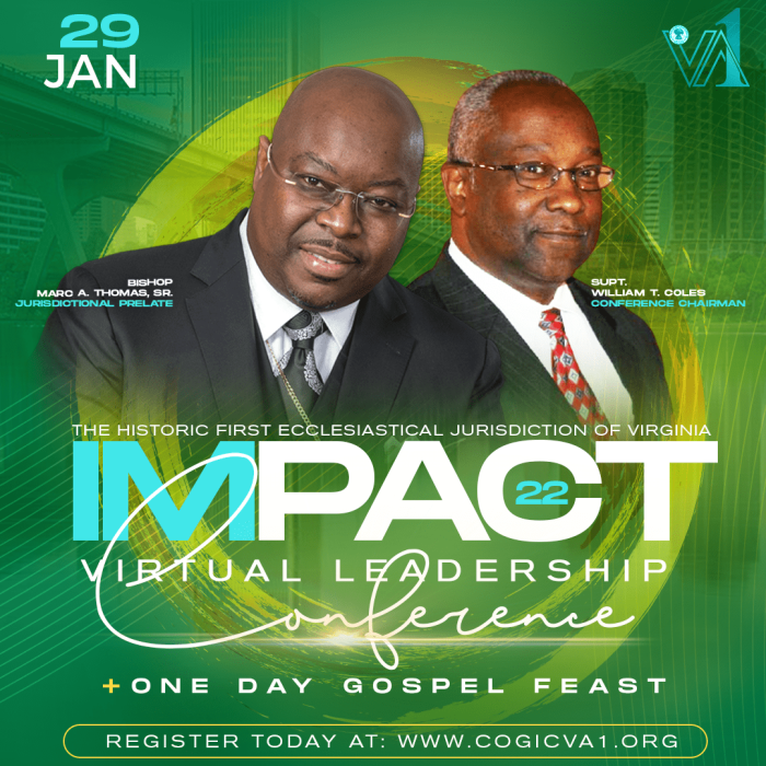 Portsmouth, Virginia – The Historic First Ecclesiastical Jurisdiction of Virginia invites you to join us on Saturday, January 29, 2022 for the 2022 IMPACT Leadership Conference, which includes a Day…