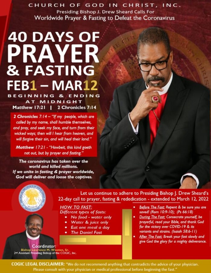 Join us as we join our Presiding Bishop and the entire Church Of God In Christ for 40 Days of Prayer & Fasting to defeat the Coronavirus. February 1 – March…