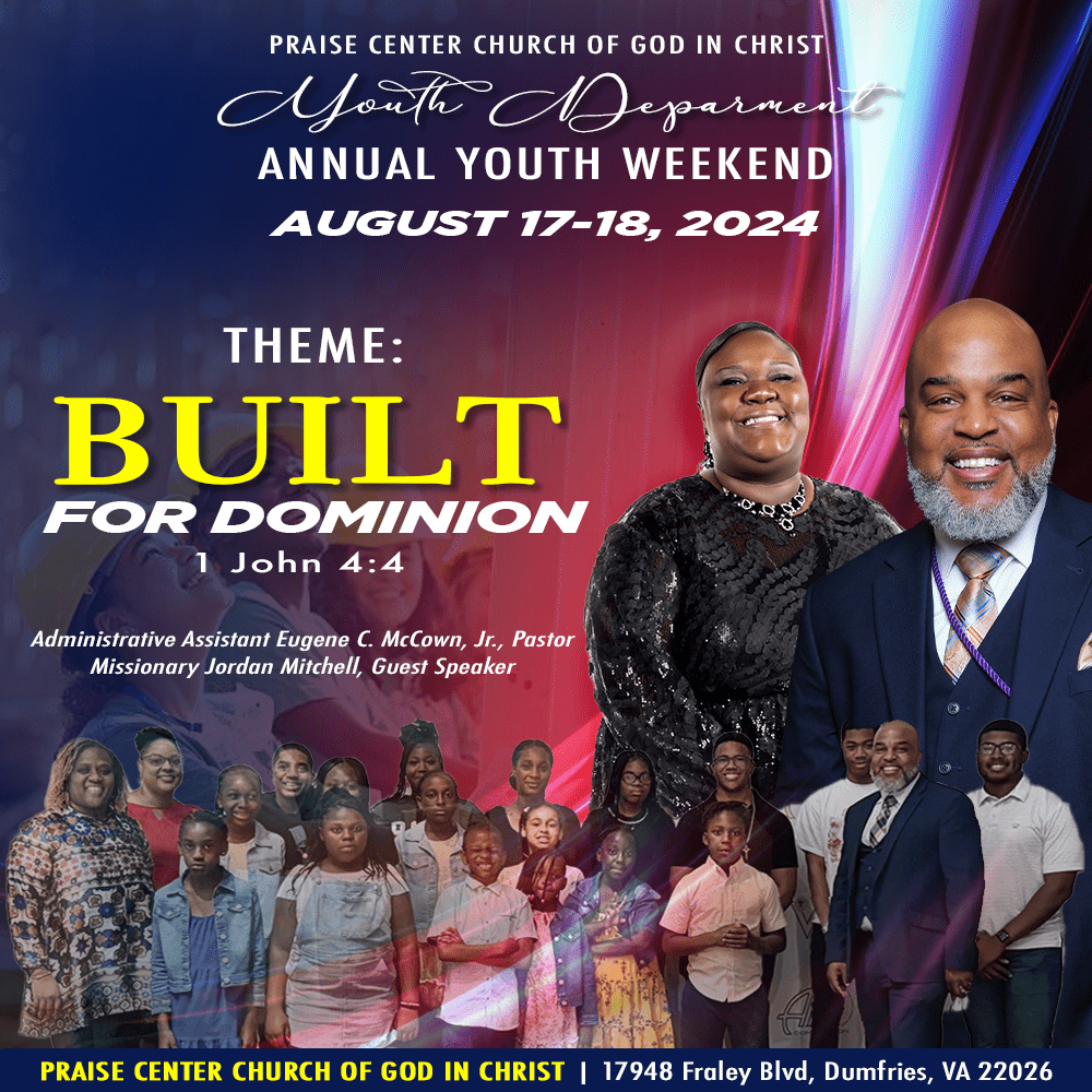 DetailsDumfries, Virginia – The Youth and Young Adult Ministries at Praise Center Church are proud to host our Annual Youth Weekend on August 17-18, 2024. Our guest speaker will be…
