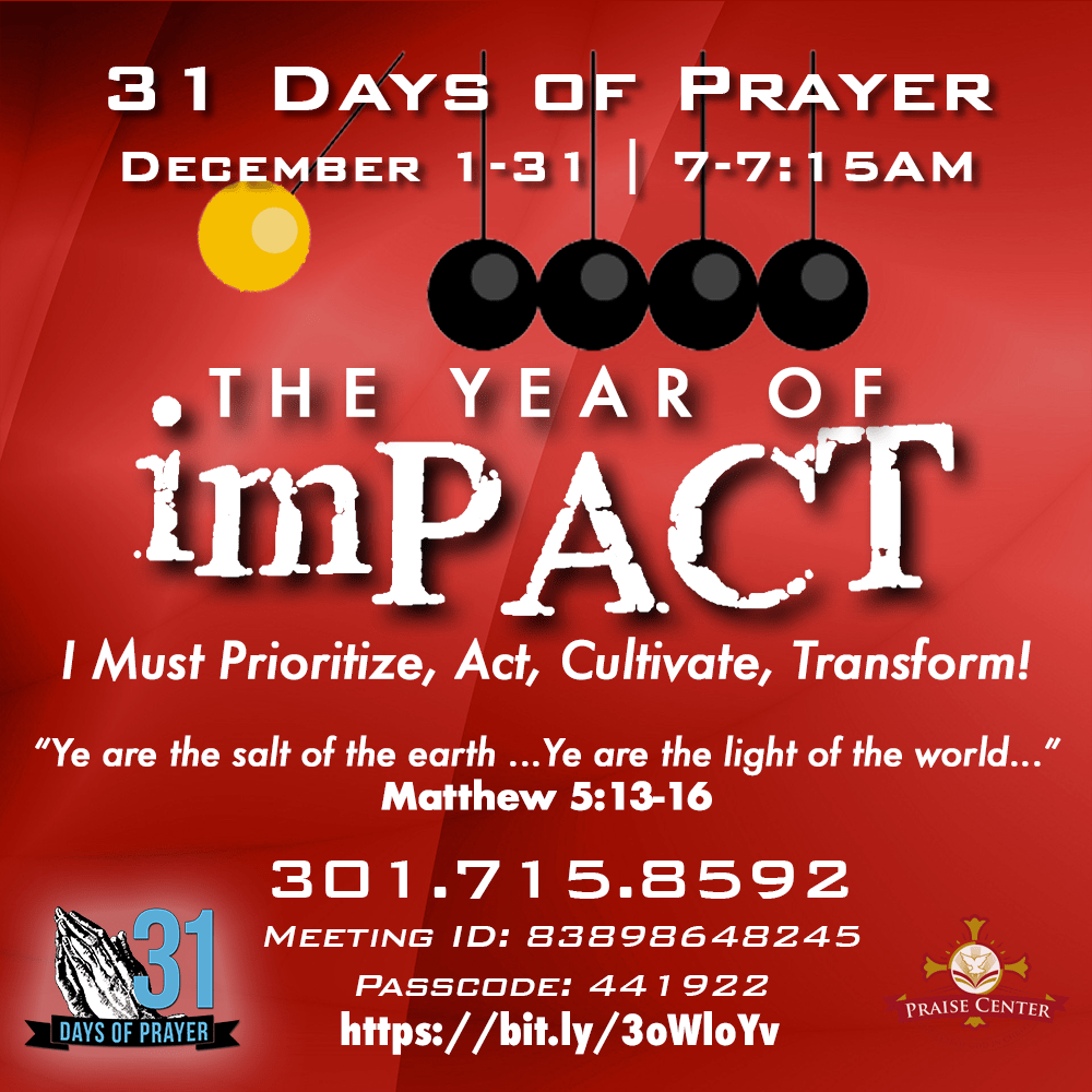 DetailsSince the launch of Praise Center Church Of God in Christ in late 2014, God has led us to end the current year and enter into the new year with 31 Days…