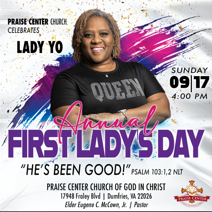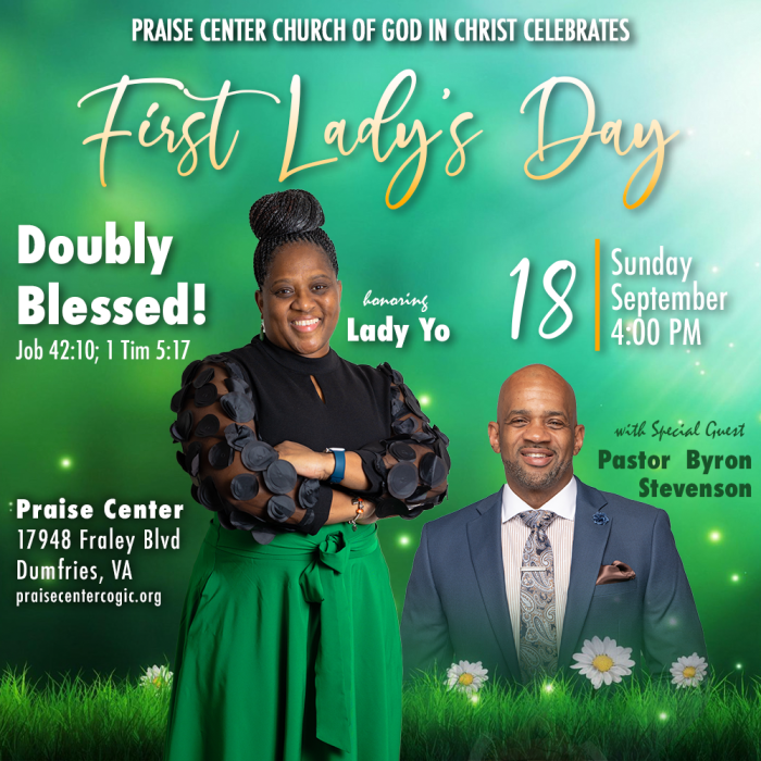 Praise Center Church warmly invites you to celebrate Lady Yolinda McCown during our Annual First Lady Day Celebration on Sunday, September 14, 2025, at 11:00 am virtually. We will honor…